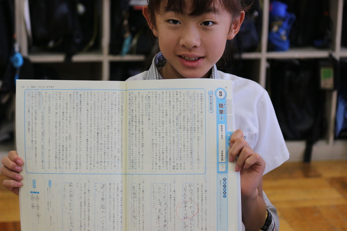 1学年上の学習内容にしっかりと取り組む4年生でした。日頃から読書量の多い英宏小学校の子どもたちは,初読の文章でもしっかりと意図をつかみ,教師の発問にもしっかりと受け答えできました。