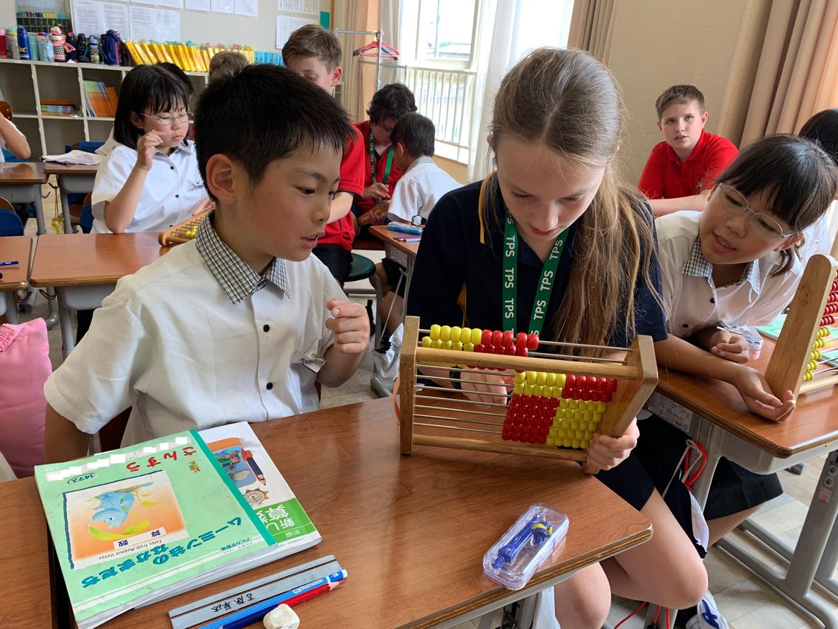 まずはじめは,Abacus(そろばん)を使ってそれぞれの国の数え方を教え合いました。