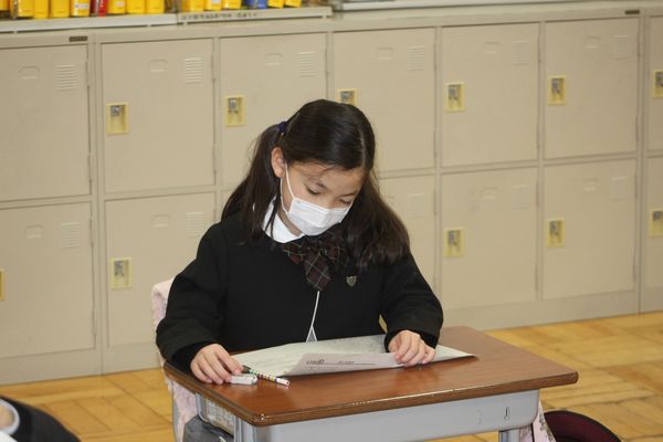 今日は1・2年生の児童を対象にJET(ジュニア・イングリッシュテスト)を実施しました。JETは暗記や読解といった従来型の英語能力ではなく、コミュニケーションのための英語運用能力を測定することを目的にアメリカで開発されたテストです。
