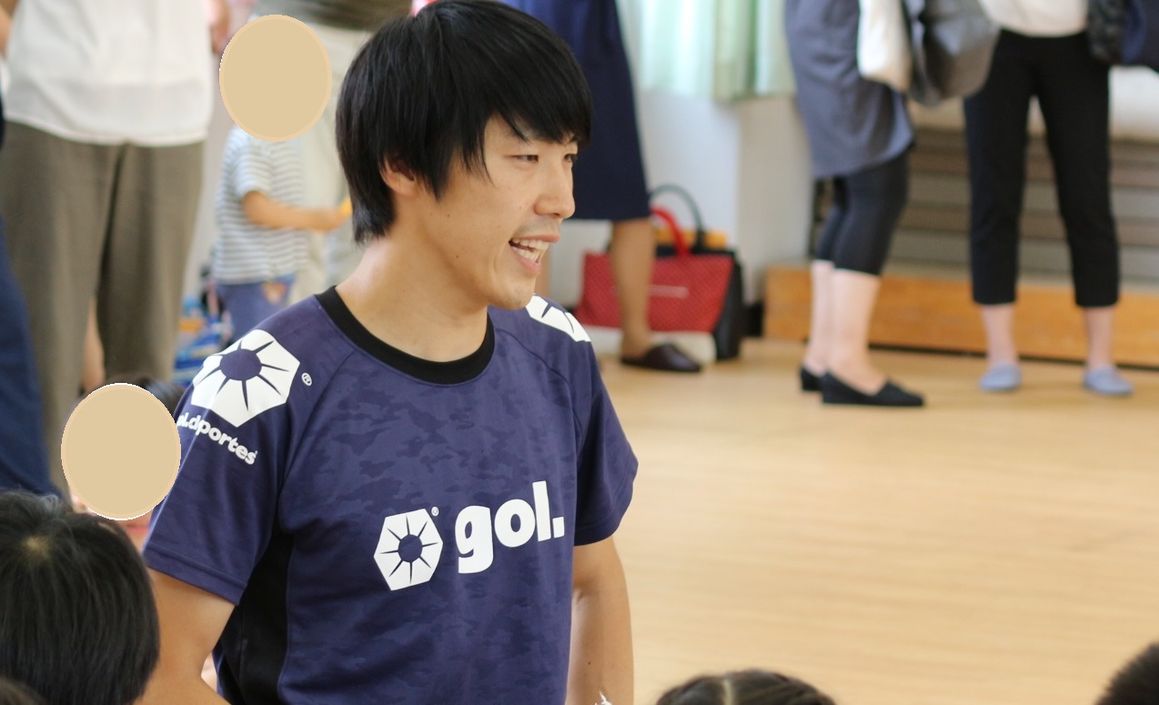 じゅんぺい先生のサッカー教室はイマージョンで,英語の指示を交えて楽しく体を動かしてもらいました。