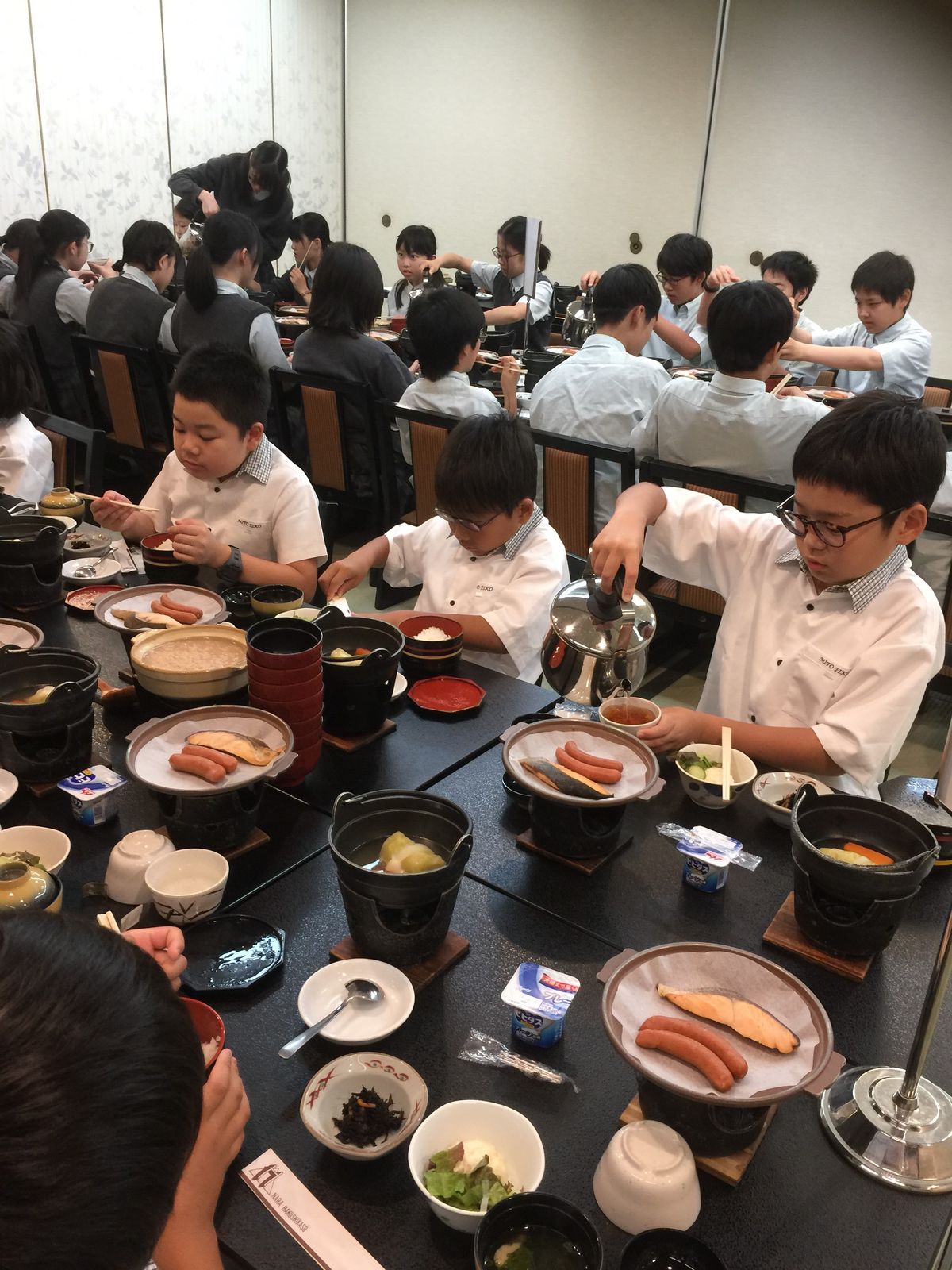 朝食には,奈良のお米を奈良のお茶で炊いた,茶粥をいただきました。