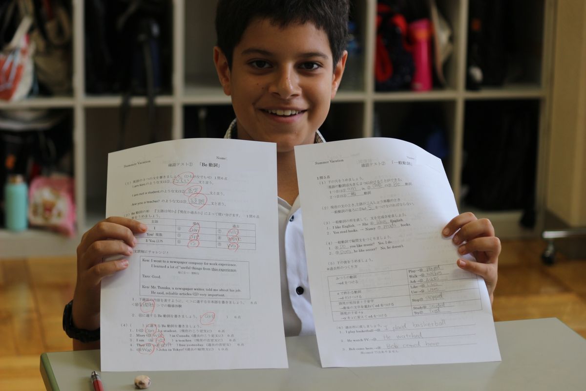 英宏小では,英語科もサマースクールの時間割に組み込まれています。6年生の英語では,1学期にならった,Be動詞の文法などをプリントを使って確認し直しました。