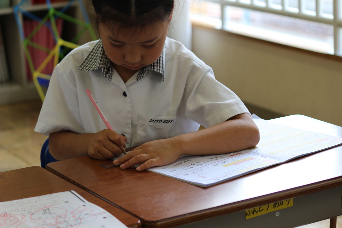 2年生は,算数で夏休み用のテキストを使って,1学期に習った教科書内容を確実なものとしていました。夏休みの間も,自由に学校に登校することができるので,基礎や発展などの学んだことをしっかりと身につけ直すことができます。