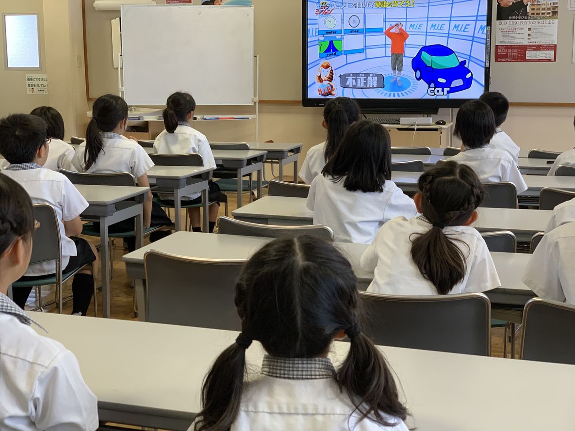 英語の授業では,デジタルコンテンツを使って動画の視聴などをして,ゆったりと英語にしたしんでいました。