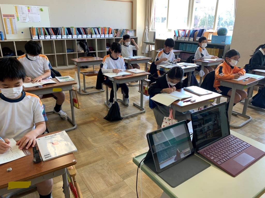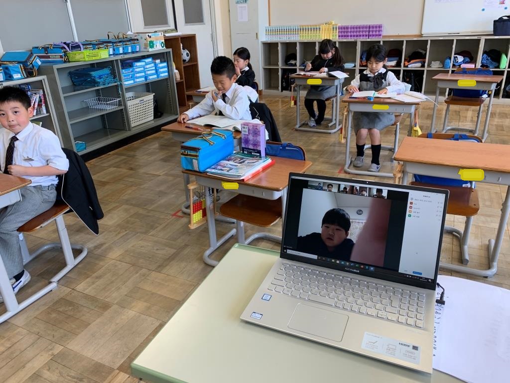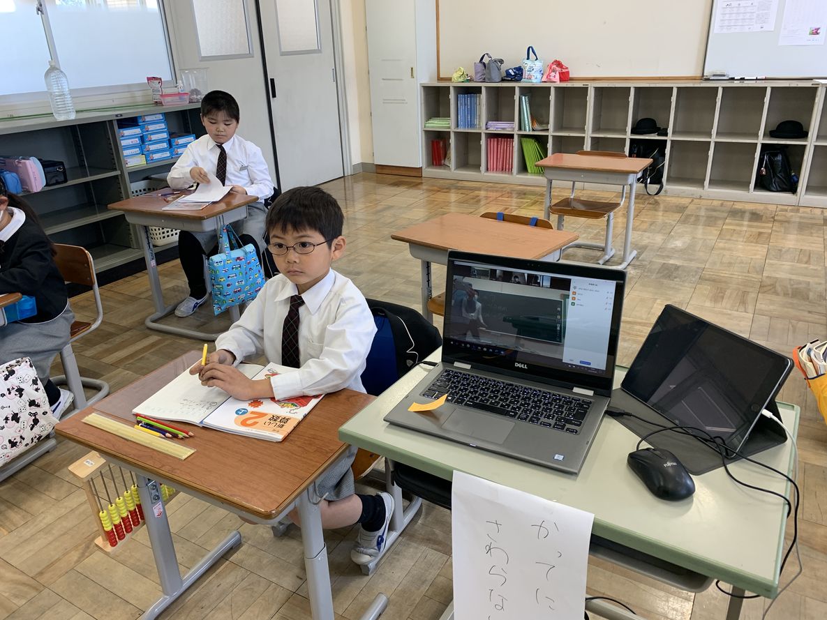 英宏小学校ではマナビヲトメナイ方針で,自宅学習者にZOOM配信をして授業を進めています。