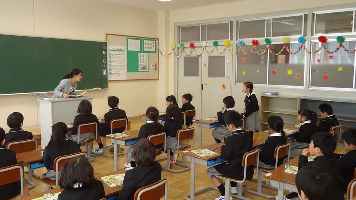 英宏小の1・2年生の生活の授業は理科と社会の2分野にわかれています。今日の1年生はたかこ先生の理科の授業をおこないました。理科の知識が豊富なたかこ先生の今日の授業は「動物」のお話。子どもたちが知っている動物の写真を使って、理科への興味を高めました。