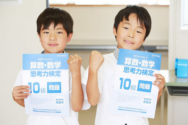 子どもの思考力を高めるために,算数・数学思考力検定の受検を推奨しています。 週2時間の「チャレンジ算数」では,検定向けの副教材を活用して発想力の豊かな子どもを育成しています。