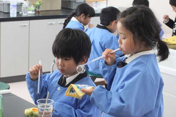 アフタースクールプログラムでは,実験教室を行います。子どもたちが大好きで,科学に親しむことのできる時間です。 洗濯のりや洗剤,砂糖,お湯などを混ぜることでシャボン玉を作り,更にそのシャボン玉を割らずにはじくことができます。子どもたちはどうしてシャボン玉が割れないのか興味津々です。