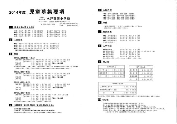 2014年度の児童募集要項をホームページにアップしました。今年から願書のダウンロードが可能となりました。また、本校でも願書の配布を開始しております。ご不明の点などがございましたら、お気軽にお問い合わせください。