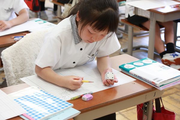「チャレンジ算数」は,子どもたちが大好きな教科の1つです。「活動」ではなく,高度な「学び」を楽しむ英宏小学校の子どもたちです。