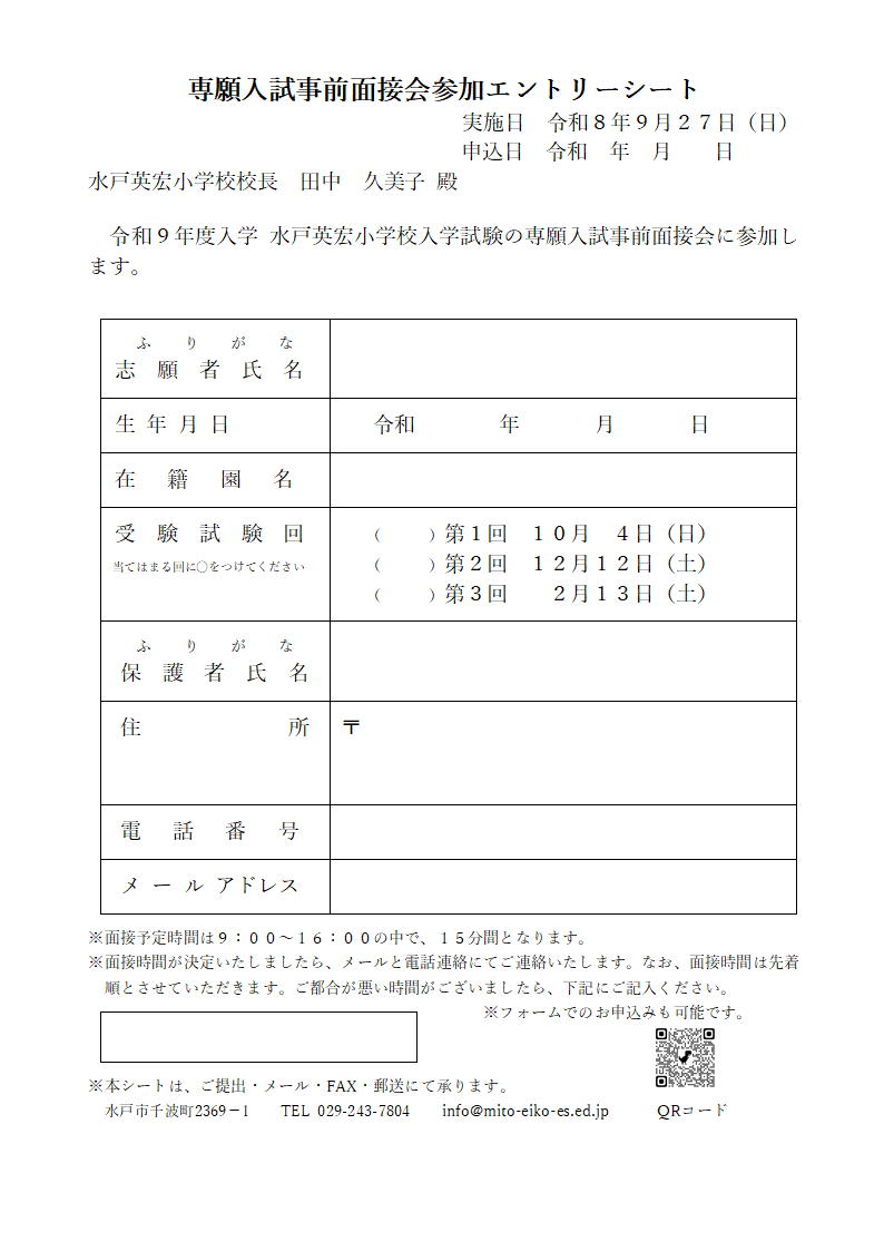 年長さん対象で、面接順はお申し込み順とさせていただきます。