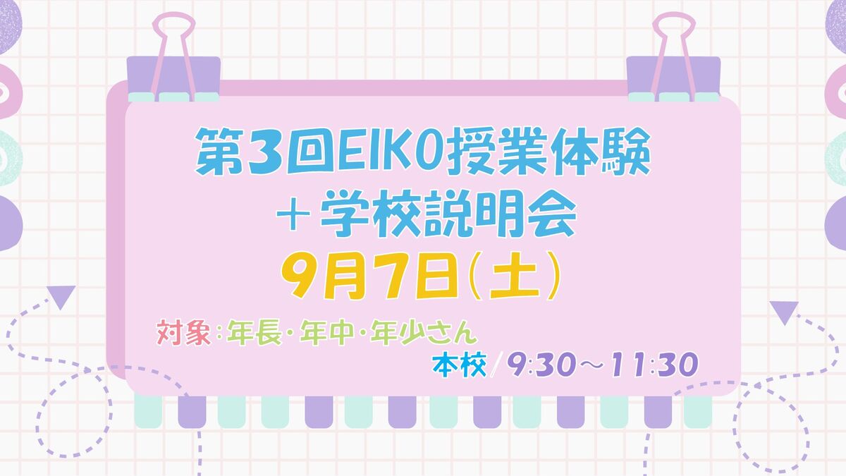 第3回「EIKO授業体験+学校説明会」を実施します。