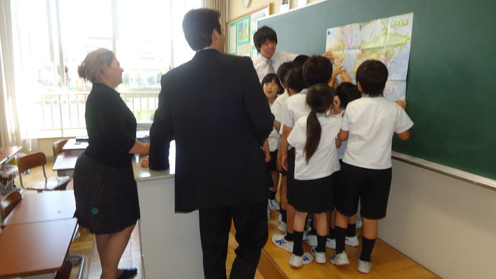 英宏小の子どもたちはすばらしい先生方の訪問に大喜び。握手攻め・質問攻めで先生方と楽しいひとときを過ごしました。先生方は27日まで本校に滞在します。明日の交流活動も楽しみです。