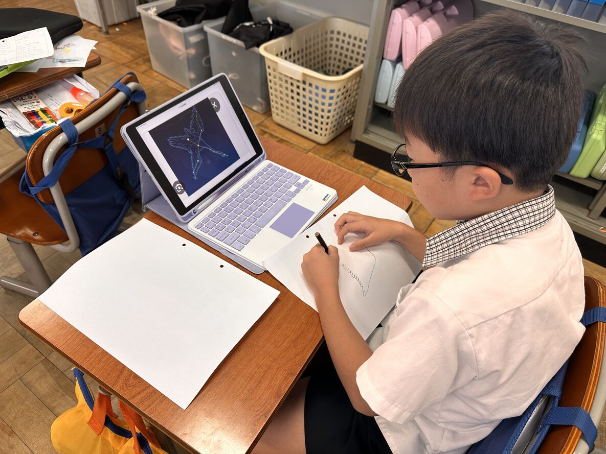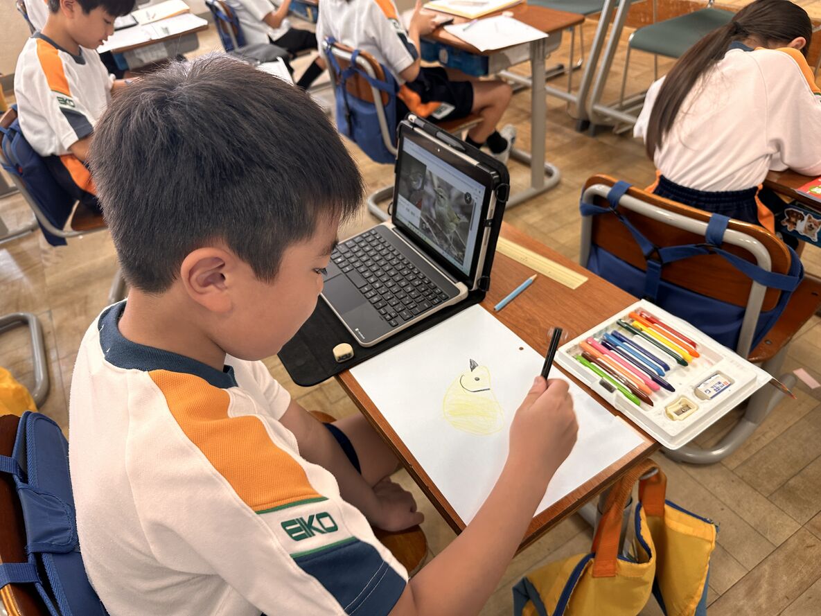 タブレットで検索をして、画像を見ながら、上手に描くことができていますね。落ち着いた学習環境の中、より深い知識を探求する英宏小の子どもたちです。