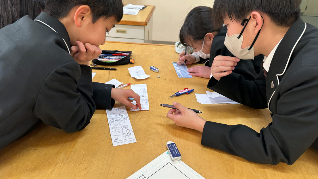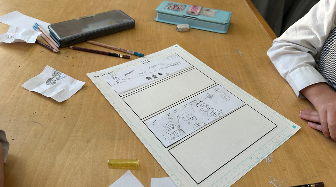 グループに分かれて4コマ漫画を描きました。