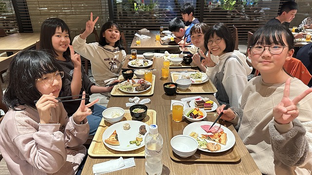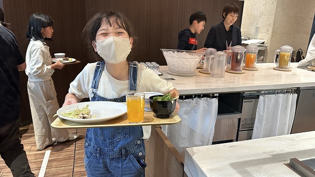 夕飯はビュッフェです。みんなたくさん食べましたね。