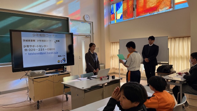 水戸警察署から講師の先生をお招きし、5年生を対象に非行防止教室を行いました。
