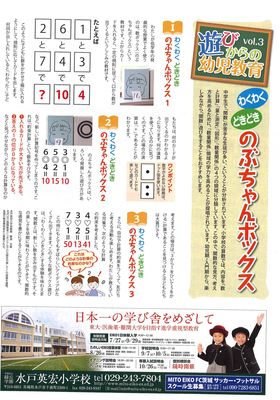 「住まいPRESS」2013.夏号.vol.8,「遊びからの幼児教育」に,本校花まる先生の算数の実践「わくわく どきどき のぶちゃんボックス」の記事が掲載されました。