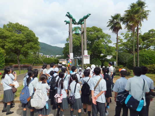 昨日から始まった九州への国内研修旅行。各学年から希望者が参加し、充実した時間をすごしています。長崎では平和記念公園および資料館で平和学習。夜は被爆体験の講話を聞きます。子どもたちはそれぞれ戦争の悲惨さと平和の大切さを感じています。