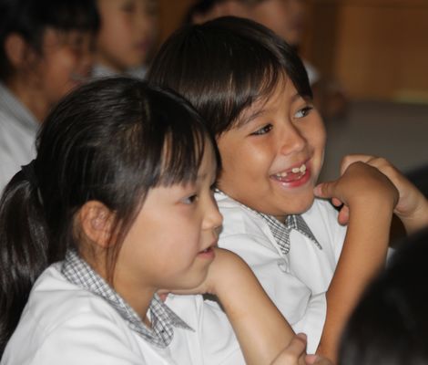 最後は,子どもたちの質問コーナー。「アメリカの有名なお祭りは何ですか?」「お年玉はありますか?」「よく読まれている本は何ですか?」子どもたちのたくさんの「?」について,お二人は丁寧に話をしてくれました。