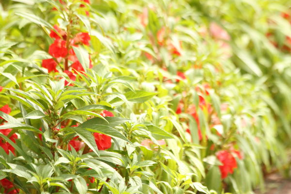 花壇で子どもたちが育てているホウセンカもお盆休みの間にぐんぐん成長して美しく咲き誇っています。