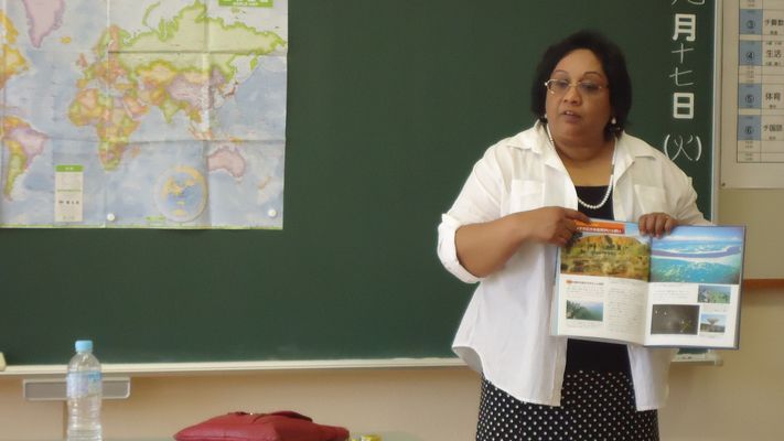 英宏小学校ではアップウエイハイスクールで長年日本語教育に携わっているマヤ先生による「オーストラリア紹介」の特別授業をおこないました。子どもたちにとってまだ知らないことがたくさんあるオーストラリア。オーストラリアの「風土」「生き物」「食生活」「学校生活」「文化」など様々なことについて、子どもたちの質問に答える形式で特別授業をおこなっていただきました。