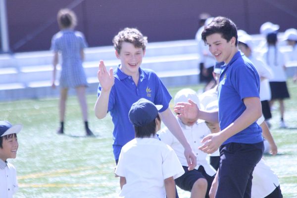 今日はアップウエイハイスクールの生徒たちと小学生の交流の時間をもちました。アップウエイの先生方と生徒たちと一緒に昼食を採ったり、グラウンドでサッカーや鬼ごっこを楽しみました。
