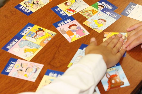 今日の国語教室の一コマは「言葉教室」。「四字熟語カルタ」を活用して、四字熟語を覚えていきます。EIKOメソッドではいわゆる「丸暗記」ではなく、唄やカルタを使って楽しく覚えられるような工夫をしています。今日は2年生の子どもたちが「以心伝心」や「危機一髪」といった四字熟語を楽しみながら覚えていました。