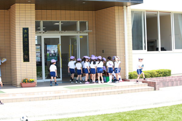 平須幼稚園の年長さんの2クラスが小学校体験をしに,水戸英宏小学校に遊びにきてくれました。