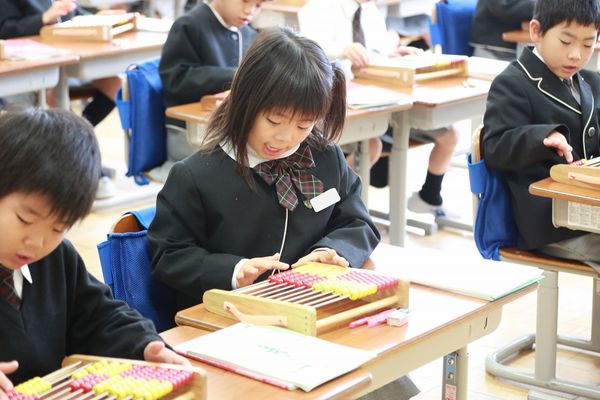 文部科学省が公立小学校の土曜授業の実施を補助する方針を決めたとの報道があります。英宏小学校では,授業時数確保と児童の生活リズムの安定のために,2012年の開校時より第1・3・4土曜日に授業を実施しています。1年生は,算数の授業で百玉そろばんを使って,10以上の数の合成分解を学んでいます。チャレンジ算数では,迷路と迷路づくりを楽しみました。