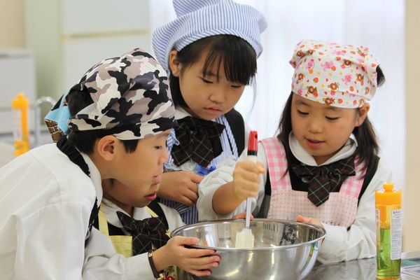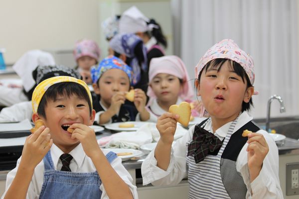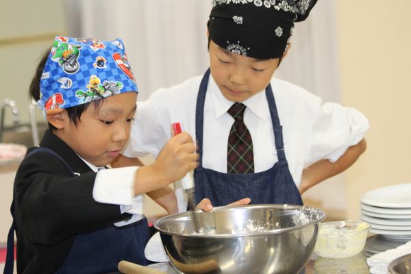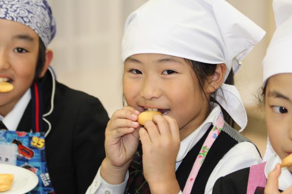 英宏小ではクッキングを奨励しています。クッキングは算数の質量感覚を養うとともに、手先を器用にするなど子どもたちの能力を高める絶好の機会です。また、何より自分自身で料理をしたものの「おいしさ」を知ることは、「食」に対する関心を高めるとともに、毎日の食事を作っている保護者の方への感謝の気持ちも芽生えさせます。