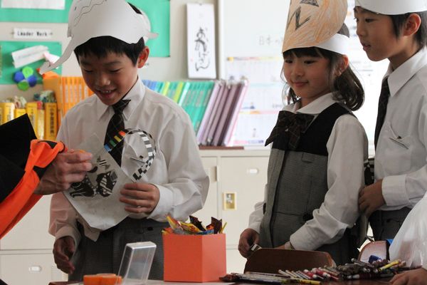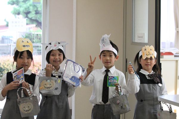 今日はEnglish Day。国際理解教育の一環としてハロウィンを楽しみました。英宏小のハロウィンは英語を使ったコミュニケーションを楽しむ機会として実施しています。事前学習として英語の時間にハロウィンの行事由来や海外でのハロウィンの様子が説明されます。また、子どもたちは一人一人、ALTのベン先生と会話練習もします。