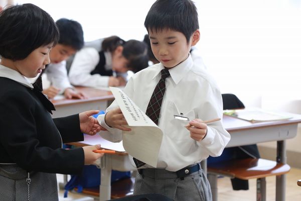 1年生の授業は年齢を尋ねる会話を学びました。今年の4月の入学から約8ヶ月。子どもたちは順調に英語力を高めています。今日も笑顔で英会話を楽しんでいます。
