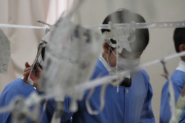 2年生の図工は新聞紙を使って「おばけ屋敷」を作って,楽しいひとときを過ごしました。職員室の先生方にもかわいらしい「招待状」が届きました。