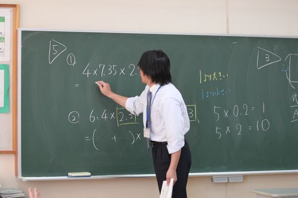 3年生ははなまる先生のチャレンジ算数。小数点の計算問題に取り組んでいますが、子どもたちも積極的に発言して、活気のある授業が進んでいます。