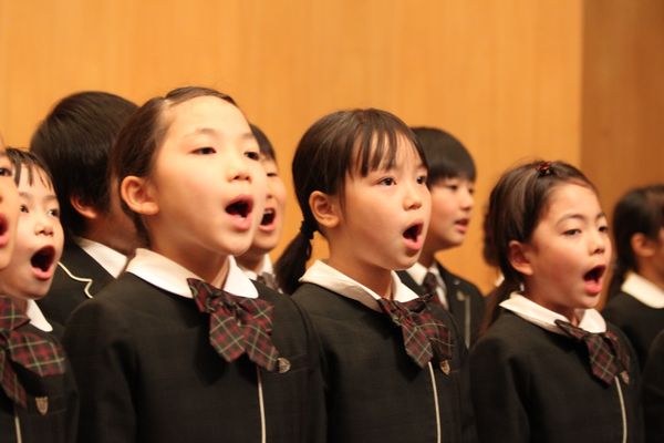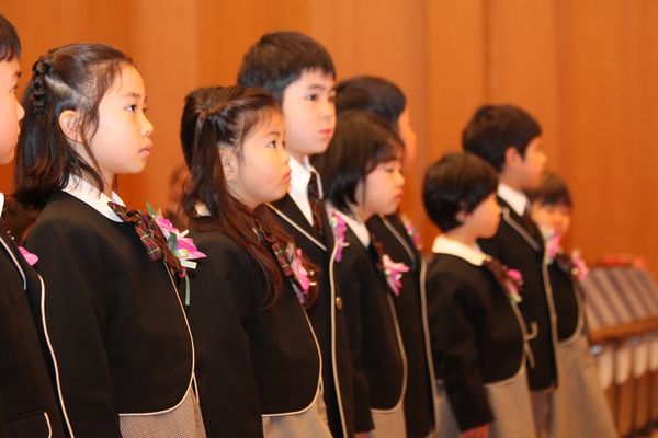 入学式恒例の校歌披露。仲間が増える喜びを込めて全校児童で歌い上げました。