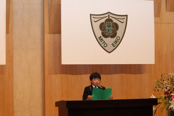 新入生代表挨拶。これから始まる学校生活への抱負を大きな声で宣誓しました。