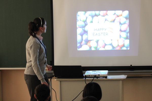 今日は「English Day」。子どもたちに大人気のナターシャ先生の授業があります。今日のナターシャ先生の授業のテーマは「Happy Easter」。「復活祭」の紹介です。
