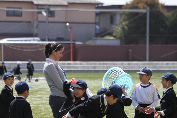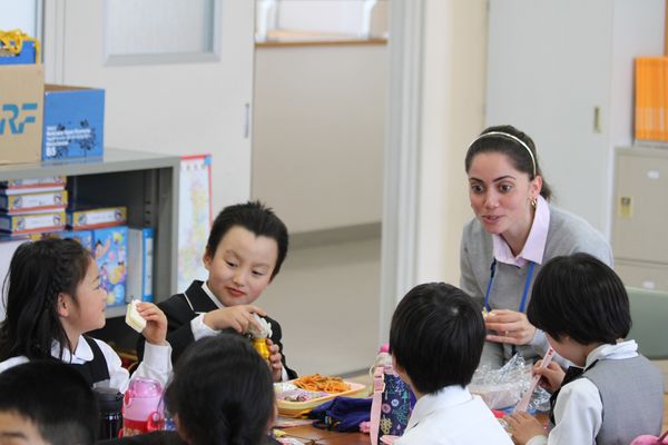 ナターシャ先生とは休み時間や放課後も交流します。ナターシャ先生とのコミュニケーションはすべて英語。学校生活を通して様々なコミュニケーションツールとしての英語を身につけていきます。