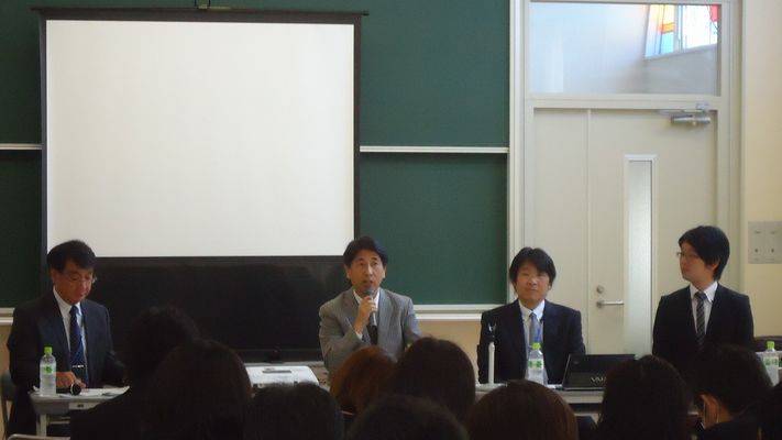 第4回目となる教育講演会では、「早期英語教育と子どもたちの未来」をテーマに、JET委員会、リセマム編集員のお二人の先生を講師としてお招きしました。本校のバイリンガル教育を推進する「Mr.Akiyama」、海外での師範授業など国際舞台でも活躍する「花まる先生」との4名でパネルディスカッションを行いました。