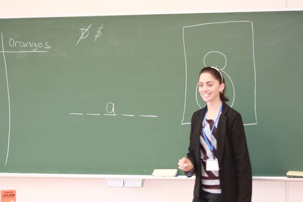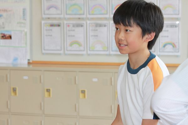 今日はEnglish Day。ナターシャ先生と英語を学びます。4年生の授業のイントロダクションは「Snowman」という英単語ゲーム。ナターシャ先生が英語圏の小学校でおこなわれているポピュラーなゲームを独自にアレンジしたものを、みんなで楽しみました。