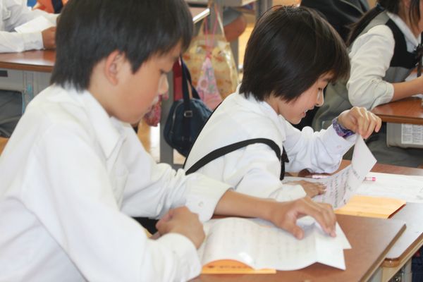 授業の最後には、保護者の方からお手紙のサプライズ。お手紙にはどんなことが書いてあるのか、分からない子どもたちの表情はドキドキ、ワクワクしていました。