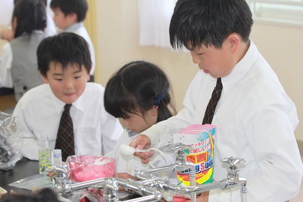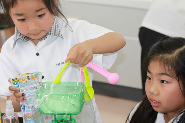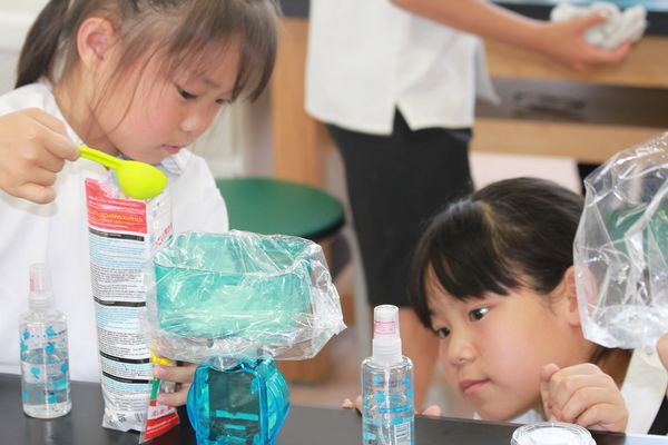 子どもたちに大人気の実験教室。今日の実験は「入浴剤をつくろう」です。