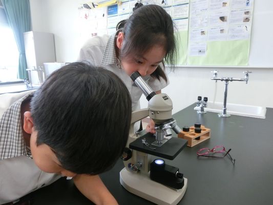 ミジンコ・アオミドロなど,水の中の小さな生き物の観察をしました。