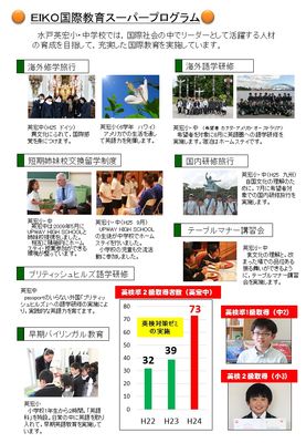水戸英宏英宏小・中学校では,国際社会の中でリーダーとして活躍する人材の育成を目指して,英語教育・国際理解教育を強く推進する「EIKO国際教育推進プログラム」をスタートします。同プログラムは小中一貫9年の連携教育を通して茨城から世界に羽ばたき,これからの時代を担う人材を育成するプログラムです。