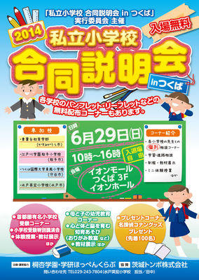 次回の入試関連イベントは6月29日(日)につくばイオンで開催される「私立小学校合同説明会」となります。合同説明会では個別相談コーナーのほか、ミニ体験授業や小学校受験講演会なども企画されています。予約不要ですので、お気軽にご来場ください。