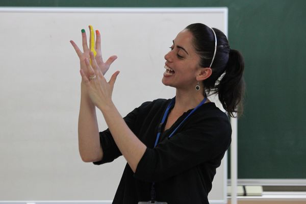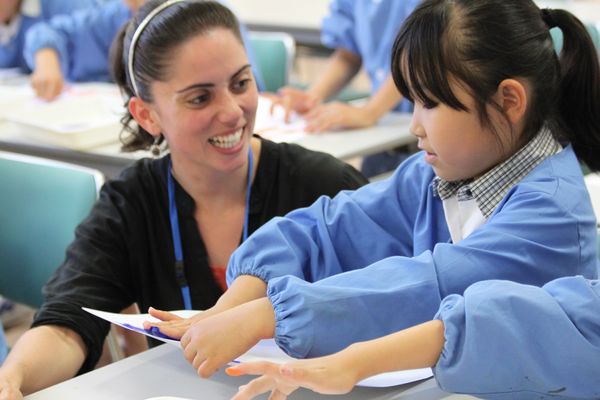 ナターシャ先生との会話も弾みます。英語を使ったコミュニケーションで感想を伝え合います。