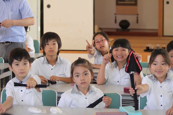 今日のサマースクールの特別プログラムは「環境教室」株式会社トンボ様のご協力により、「制服の残り布でマイ箸袋を作ろう」を実施しました。