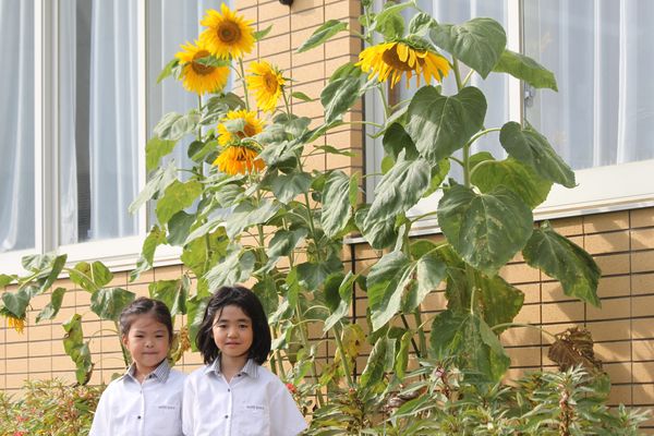 校内の花壇で育てていたひまわりが美しく咲き誇っています。夏休みも残すところ10日。夏の日差しを浴びながら元気よく成長していくひまわりのように子どもたちも成長してほしいと思います。