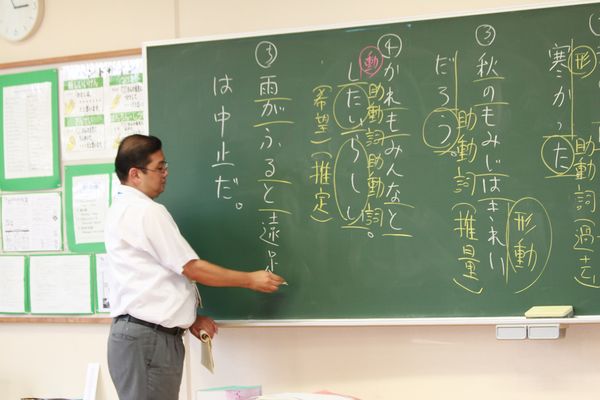 英宏小の3年生以上は月・火・木は7時間授業です。今日の4年生の7時間目はチャレンジ国語。文法の授業で助動詞を学習しています。